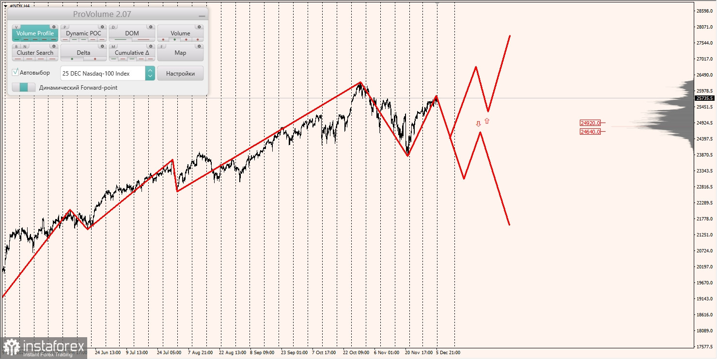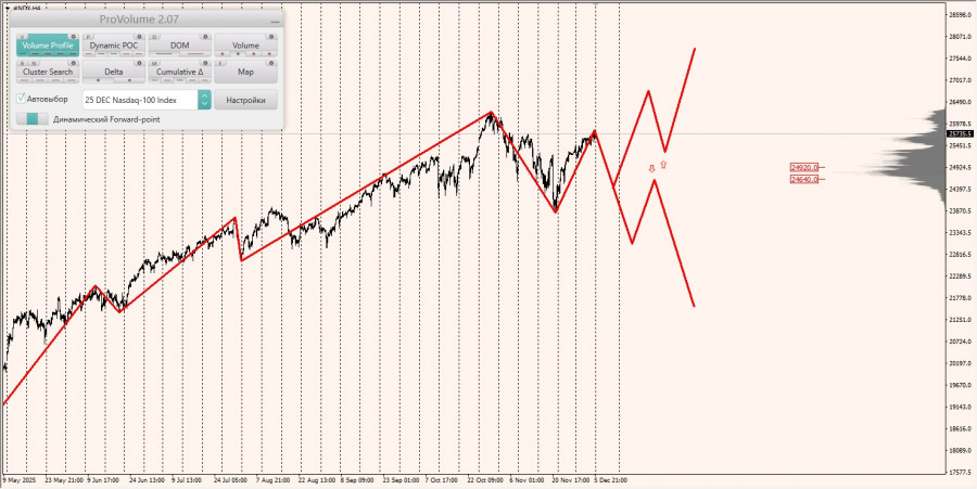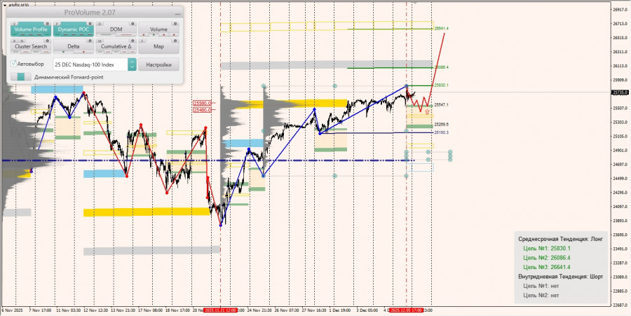 Среднесрочная тенденция: в лонг. Максимальное скопление объемов среднесрочной тенденции расположено в диапазоне по котировкам 25480.0-25580.0. В настоящий момент по #NASDAQ совершаются инвестиционные операции выше указанного диапазона, что говорит о силе покупателей.